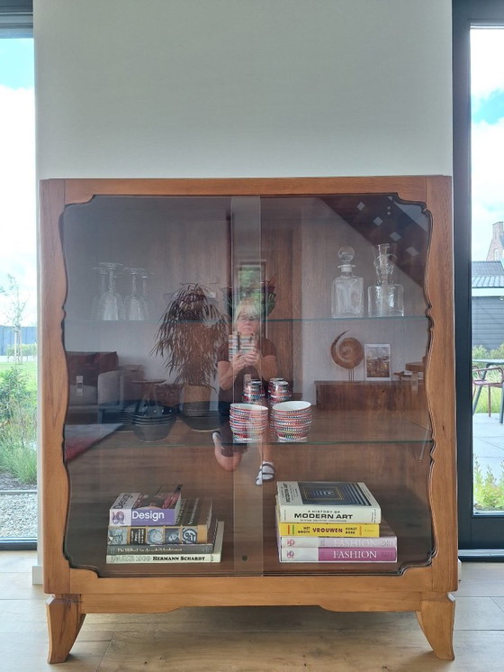 Deze unieke Art Deco vitrinekast is een toonbeeld van vakmanschap en stijl uit het begin van de 20e eeuw. Met zijn elegante lijnen en rijke afwerking voegt het charme toe aan elk interieur.