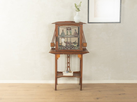 Art Nouveau vitrinekast uit de jaren 1900. Hoogwaardige massief houten kast met een glazen deur met afgeschuinde randen, een verstelbare plank, een opbergvlak en decoratieve poten.