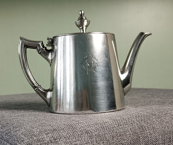Dit is een verzilverde theepot van Arthur Krupp Berndorf.