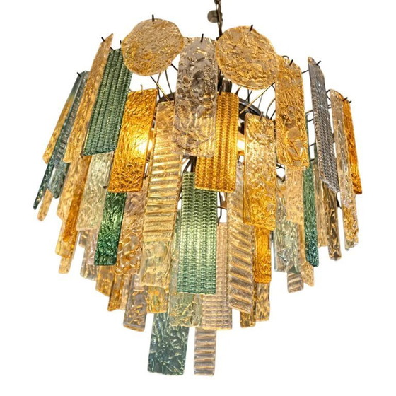 Scenografische kroonluchter met 'Listelli'-elementen van Murano-glas, vervaardigd met de traditionele 'Piastra'-techniek. Verschillende texturen
