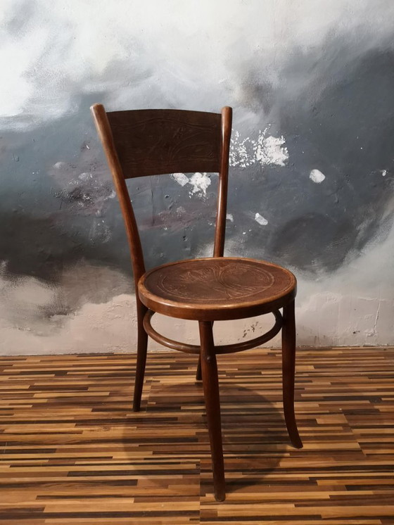 Authentieke BAUMANN bistrostel - Vintage gebogen hout met Art Nouveau-decoratie