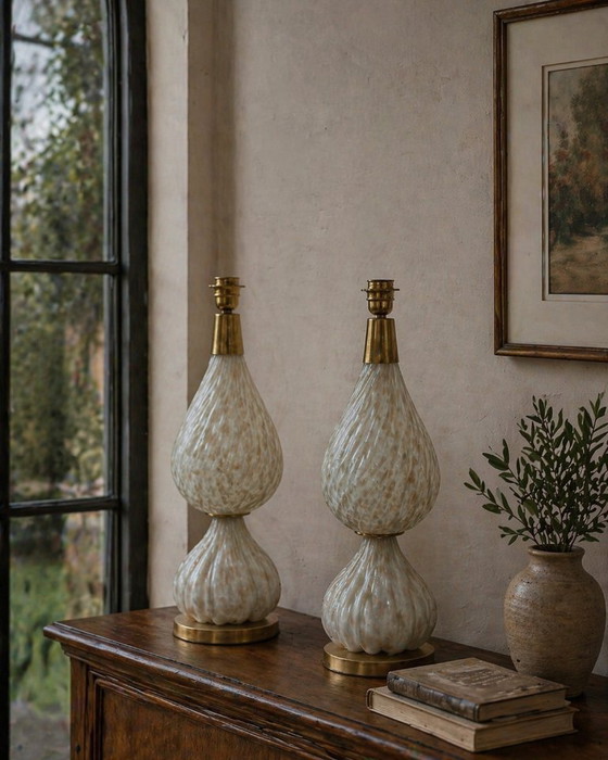 Het betreft een paar tafellampen met een sterk decoratieve, vintage uitstraling.