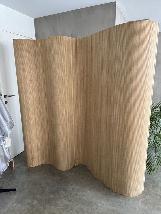 Bamboe kamerscherm, we gebruiken deze niet meer, daarom verkopen we hem :). Er zit een klein stukje los aan de onderkant, maar dat is makkelijk vast te lijmen :)