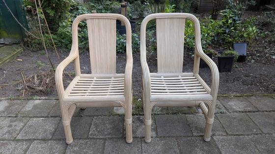 Deze bamboe tuinstoelen zijn een prachtige aanvulling voor elke tuin. Ze zijn vervaardigd uit duurzaam bamboe en hebben een natuurlijke beige kleur die perfect past in een bohemian stijl. De stoelen zijn lichtgewicht en gemakkelijk te verplaatsen, ideaal voor buitengebruik. Ze bieden een comfortabele zitervaring dankzij hun ergonomische ontwerp. Perfect voor een ontspannen middag in de tuin.