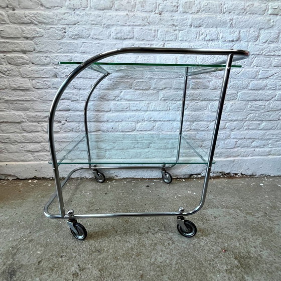 Barcart, Serveerwagen Chroom, Glas - Art Deco, Bauhaus