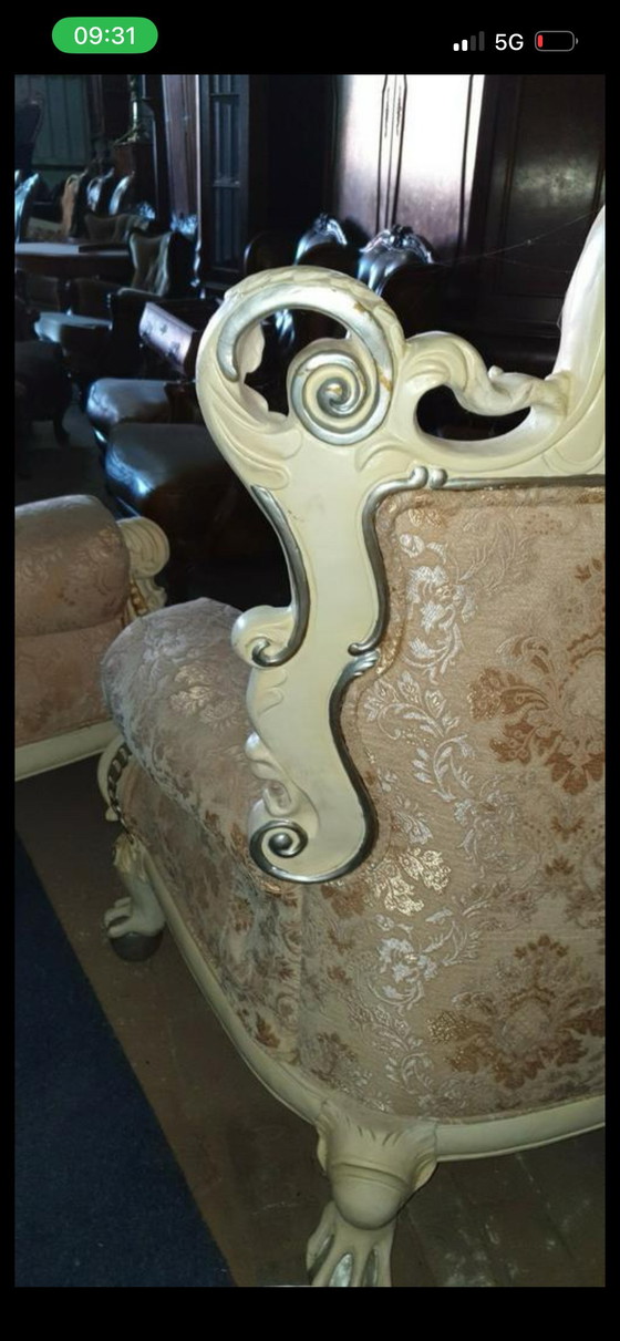 Dompel jezelf onder in de weelde van vervlogen tijden met deze prachtige barokfauteuil. Het ingewikkelde houtsnijwerk en de luxueuze bekleding roepen de grandeur van klassiek Europees design op en maken hem tot een statement piece voor elk verfijnd interieur.