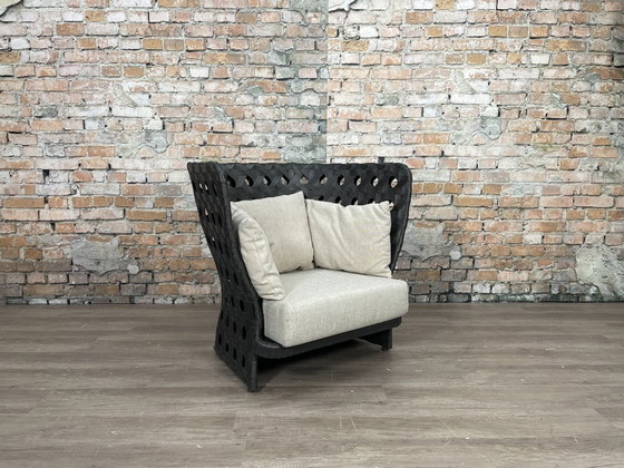 De Canasta Low Back is een ontwerp van Patricia Urquiola voor het merk B&B Italia. Met de hoge rugleuning biedt deze fauteuil extra steun en een gevoel van beschutting. Het open vlechtwerk en de duurzame materialen maken het een opvallend meubel voor binnen en buiten.