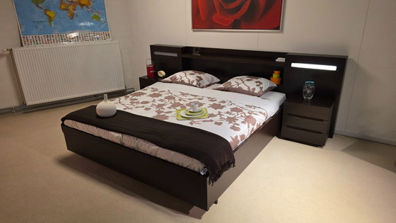 Dit strak en tijdloos bedset Salsa in donkerbruik eikenhout past in ieder eigentijdse slaapkamerinrichting en biedt ruimte voor elk gewenst slaapcomfort bodems en matrassen naar keuze. Hiervoor kunnen wij u verder adviseren.