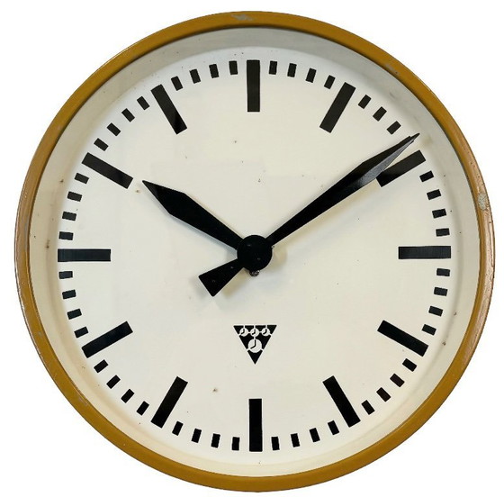 Beige industriële fabriekswandklok van Pragotron, jaren 60