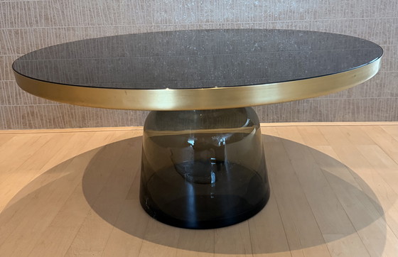 Verrijk uw woonruimte met de Classicon Bell bijzettafel, een meesterwerk van modern design dat elegantie combineert met functionaliteit. Dit prachtige meubelstuk heeft een unieke voet van hoogwaardig glas, wat zorgt voor een strakke en luchtige uitstraling die bij elk interieur past. De luxueuze gouden rand rond het tafelblad voegt een vleugje weelde toe en maakt het een opvallende aanwinst voor uw huis. Met een perfecte diameter van 75 cm is deze tafel ideaal voor moderne woonkamers of als stijlvolle bijzettafel. Laat dit prachtige meubelstuk het middelpunt van uw interieur worden en geniet van de combinatie van stijl en verfijning die het aan uw ruimte toevoegt.