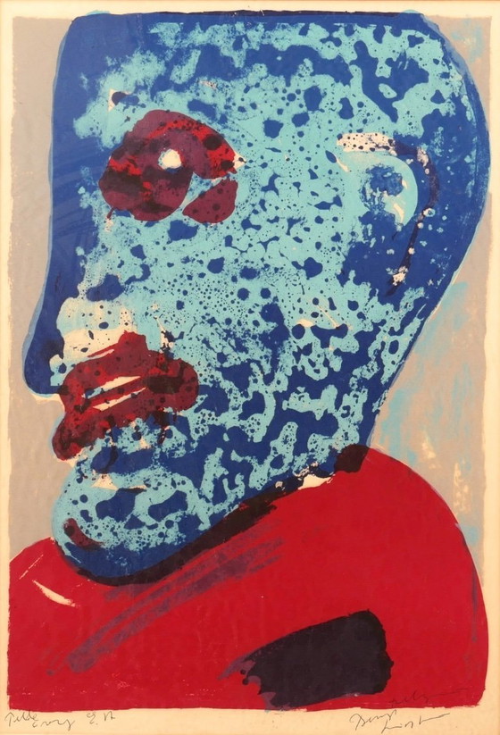 Bengt Lindström litho met de titel 'Blue Profile'.