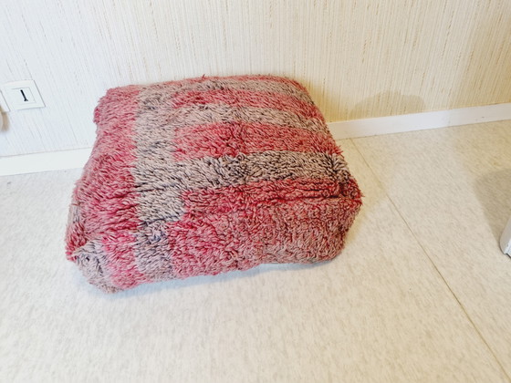 Deze unieke Marokkaanse wollen poef is handgemaakt door Berbervrouwen met behulp van Boujaad-tapijten uit Marokko. Elke poef is uniek en voorzien van een Berbersymbool.
