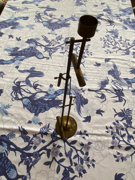 LIBRA is een bijzondere bronzen kandelaar die van stand verandert naar mate de kaars opbrandt en dus lichter wordt.