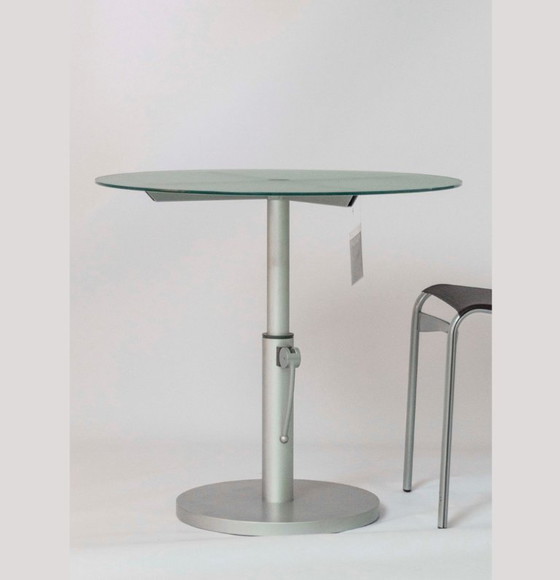 De bijzettafel Up and Down van Glas Italia combineert tijdloos design met functionaliteit. Het blad van gezuurd glas rust op een stevig stalen onderstel en is dankzij het in hoogte verstelbare ontwerp bijzonder praktisch en geschikt voor elke gelegenheid. De tafel heeft een diameter van 80 cm en is in hoogte verstelbaar van 62 tot 75 cm.