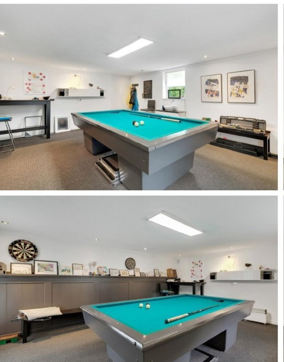 Complete biljartkamer met wedstrijdbiljart Wilhelmina. Het biljart is in nieuwstaat en voorzien van een digitale thermostaat (afmeting 230x115). De kamer is compleet uitgerust met statafel, krukken en bankjes. Verder voorzien van specifieke Biljart-ledverlichting, keuenrek, telklok en scorebord.