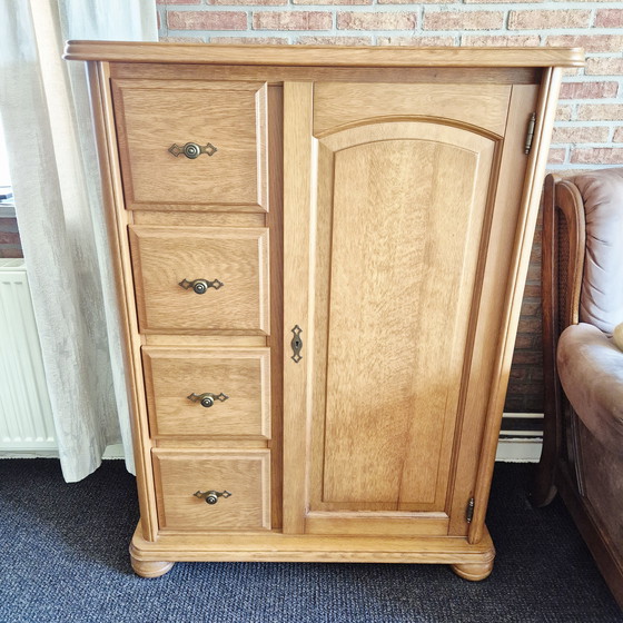 - Gemaakt van hoogwaardig eikenhout, biedt deze kast duurzaamheid en een natuurlijke uitstraling.