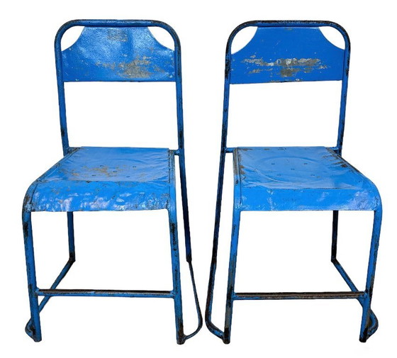 Blauwe industriële ijzeren stoelen, set van 2, jaren 50