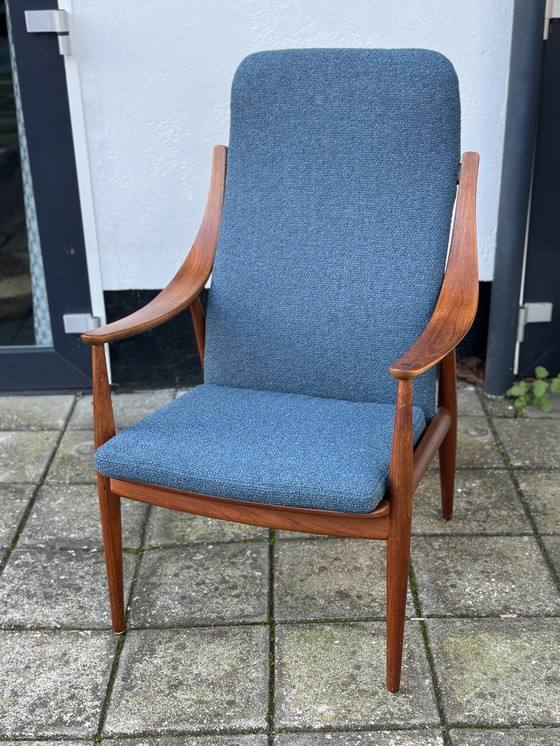 - Deze stoel, ontworpen door Peter Hvidt en Olga Nielsen, belichaamt de elegantie en eenvoud van het Mid Century Modern tijdperk.