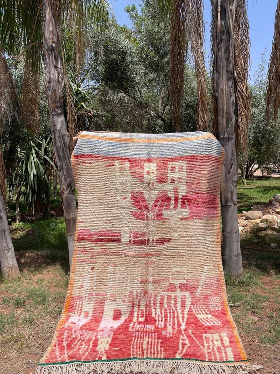 Dit authentieke Boujaad tapijt van 270 x 160 cm is een uniek kunstwerk vol karakter, met de hand geweven in de stad Boujaad in de regio Beni Mellal–Khénifra in Marokko. Elk tapijt vertelt zijn eigen verhaal – een verhaal van eeuwenoud Berbers vakmanschap, creativiteit en emotie.