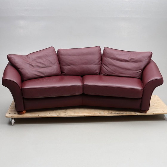 Ervaar het summum van Zweeds vakmanschap met de Bröderna Andersson "Estrada" leren bank. Dit prachtige meubelstuk, bekleed met rijk bruin leer, belichaamt zowel luxe als comfort en is daarmee de perfecte aanvulling op elke stijlvolle woonruimte.