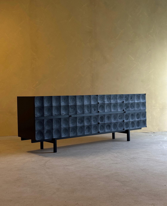 Brutalistisch dressoir in zwart gebeitst eiken van J. Batenburg voor MI België