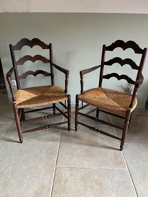 Charmant paar Provençaalse fauteuils met authentiek karakter.
