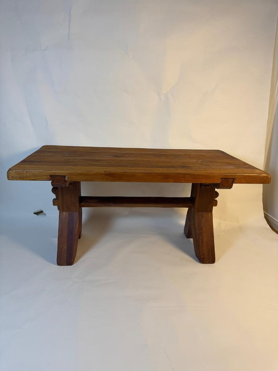Brutalistische eettafel, massief eiken, De Puydt vintage