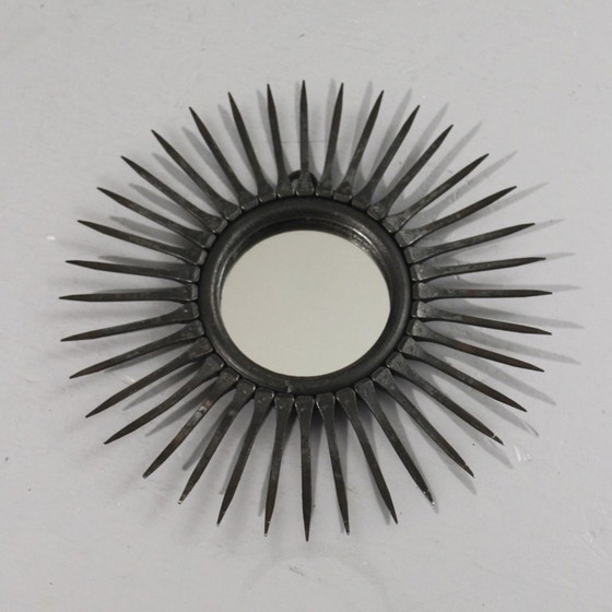 Klein spiegeltje, circa 1950, handgemaakt van gelast ijzer, de armen gevormd uit oude platte spijkers, een prachtig stuk.