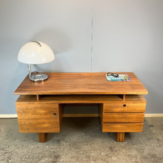 Bureau uit het midden van de 20e eeuw in Bauhaus-stijl, walnoothout, jaren 60.
