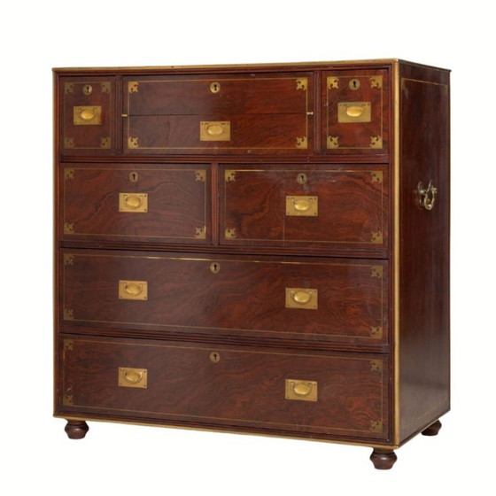 Uitzonderlijk Brits koloniaal campagnebureau van mahoniehout, gemaakt in het begin van de 20e eeuw. Plaquette: “The Clermont. Baltimore. 1801”.