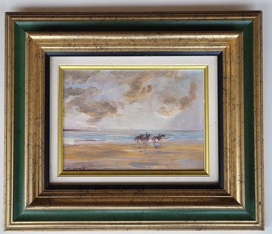 Prachtig zeezicht met ruiters, gesigneerd. De kunstenaar, zoon van de internationaal erkende schilder Maurice Ehlinger, kreeg een klassieke opleiding van zijn vader. Lid van de jury van de “Salon des Artistes Français” sinds 1967 (Grand Palais, Parijs).