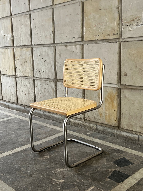 De B32 "Cesca" stoel ontworpen door Marcel Breuer in de jaren 1920 is onder andere geproduceerd door de Italiaanse fabrikant Gavina en later door Knoll International. Deze iconische stoel is een tijdloos stuk meubelgeschiedenis, bekend om zijn elegante ontwerp en onberispelijk vakmanschap. Ik bied een opgeknapte Cesca stoel aan die trouw is aan het originele ontwerp van Marcel Breuer.