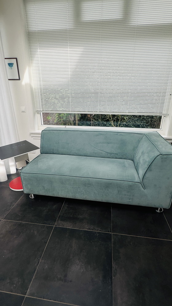 Deze moderne chaise longue in een frisse mintkleur voegt een vleugje elegantie toe aan elke ruimte. Het strakke ontwerp en de comfortabele bekleding maken het een ideale keuze voor ontspanning. Er zitten een paar kleine vlekjes, zie foto.