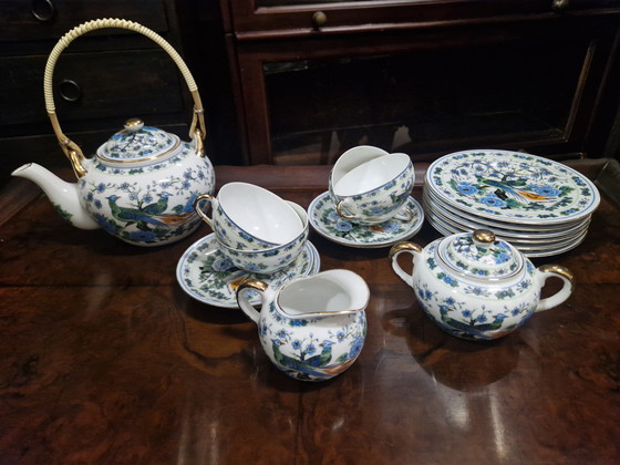 Ervaar de elegantie van dit charmante 4-delige theeservies, versierd met een prachtig pauwmotief. Dit servies, vervaardigd uit hoogwaardig porselein, straalt een tijdloze schoonheid uit die elke theetijd bijzonder maakt.