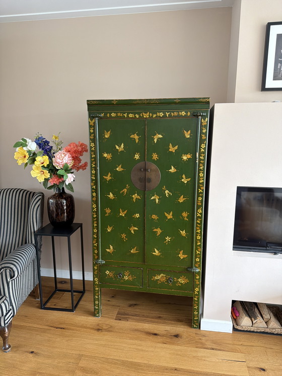 Chinese bruidskast groen met goudkleurige vlinders en bloemen