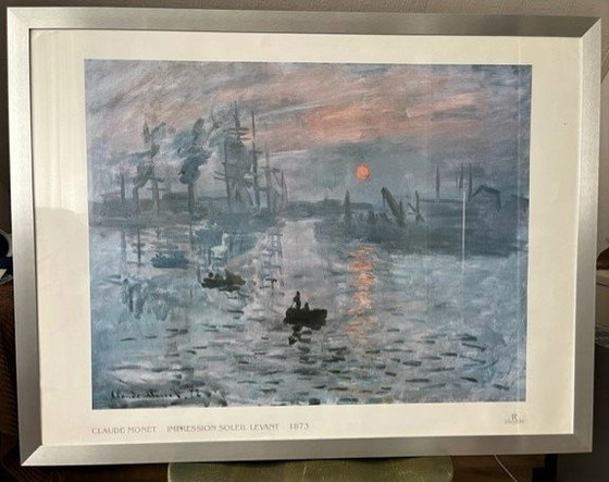 Een ingelijste affiche/poster van Claude Monet met de titel: Impression Soleil Levant uit 1873.