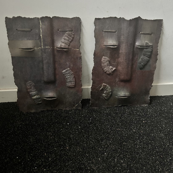 Conditie & Signatuur: één makers verkeert in perfecte staat. Helaas is de andere masker gebroken geweest; deze is gelijmd; zie ook de foto’s. De maskers zijn aan de achterzijde gemarkeerd.