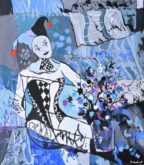 - Dit canvas schilderij is een perfect voorbeeld van abstracte kunst en biedt een vrije en fantasierijke interpretatie van de figuur van Colombina.