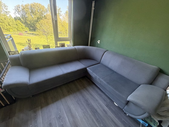 Comfortabele grijze hoekbank met lichte gebruikssporen
