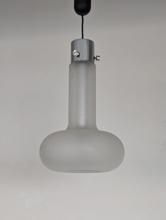 Deze hanglamp getuigt van verfijnd Italiaans vakmanschap en innovatief design. Hij werd in de jaren 70 ontworpen en geproduceerd door het Italiaanse bliksembedrijf Cierre Lampadari. Het onderscheidende kenmerk is de bolle vorm, waardoor esthetiek en functionaliteit samensmelten. Deze opmerkelijke lamp is geproduceerd met behulp van geblazen satijnzuur geëtst glas en metaal, wat resulteert in een stuk dat een zacht, diffuus licht uitstraalt, perfect voor elke omgeving. Het item is in goede staat. De aangegeven verzendkosten zijn bij benadering. Verzendkosten zijn voor rekening van de koper en variëren afhankelijk van het type en de afmetingen van het item, en ook afhankelijk van de afstand die door de vervoerder wordt afgelegd.