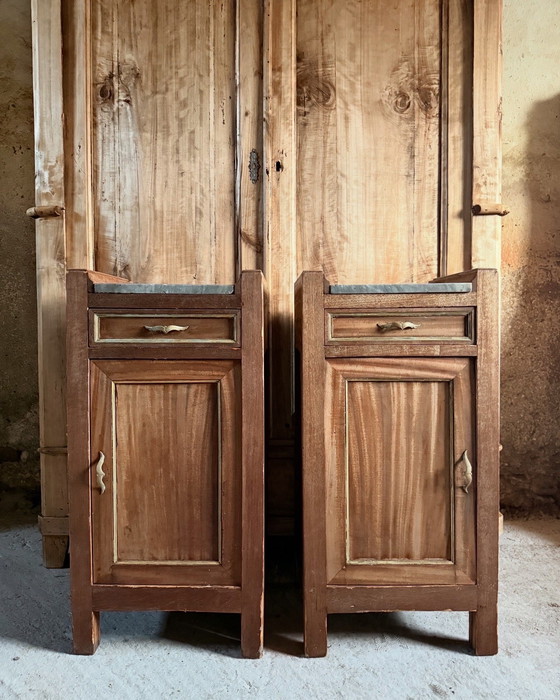 Dit paar Art Deco nachtkastjes heeft een prachtige combinatie van hout en marmer. Het elegante ontwerp laat de klassieke Art Deco stijl zien, met strakke lijnen en subtiele decoratieve elementen. De marmeren bladen voegen een vleugje luxe toe, waardoor deze stukken niet alleen functioneel zijn, maar ook een stijlvolle toevoeging aan elke slaapkamer. Perfect voor liefhebbers van vintage meubilair met karakter.