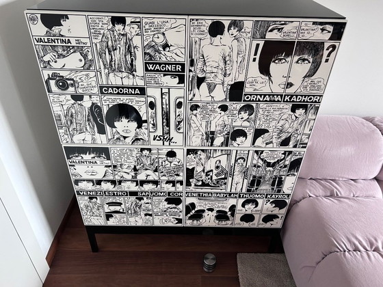 Ontdek de Crepax “Valentina” kast van Giuseppe Canevese, een opvallend meubelstuk uit de Crepax collectie. Deze kast heeft een gedurfd zwart-wit stripontwerp, geïnspireerd op de iconische stijl van Valentina. Perfect om een vleugje artistieke flair aan elke ruimte toe te voegen, biedt de kast bovendien voldoende opbergruimte dankzij de strakke planken aan de binnenkant. Een must-have voor verzamelaars en designliefhebbers.