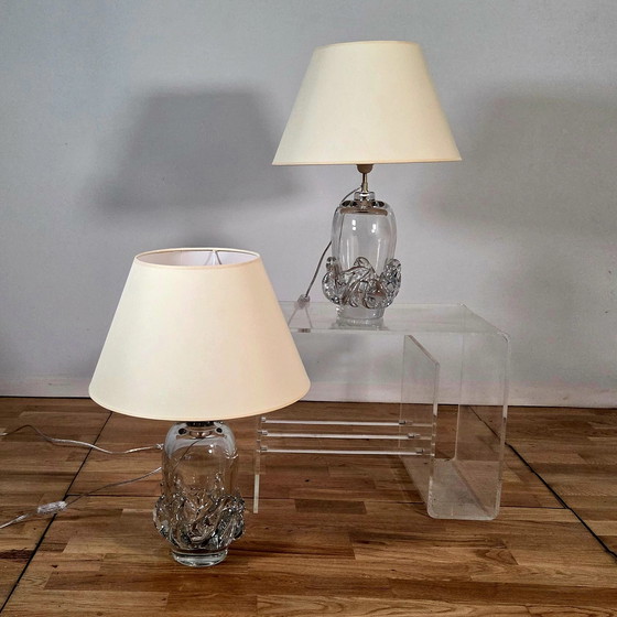 Daum Frankrijk, paar Sirius kristallen lampen, model gemaakt in 1952