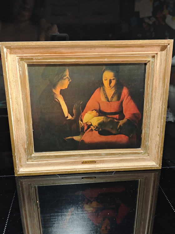 Prachtige ingelijste vintage reproductie: "De Geboorte van Christus" van Georges de La Tour