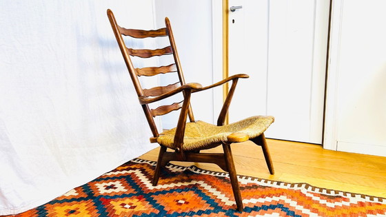 Midcentury, mid century modern, teak, nederlands ontwerp, dutch design, brutalist, landelijk, rustiek, cottage core, rieten stoel, schommelstoel, eames, cherry, houten zetel, fauteuil, de ster, 1950s, jaren 50
