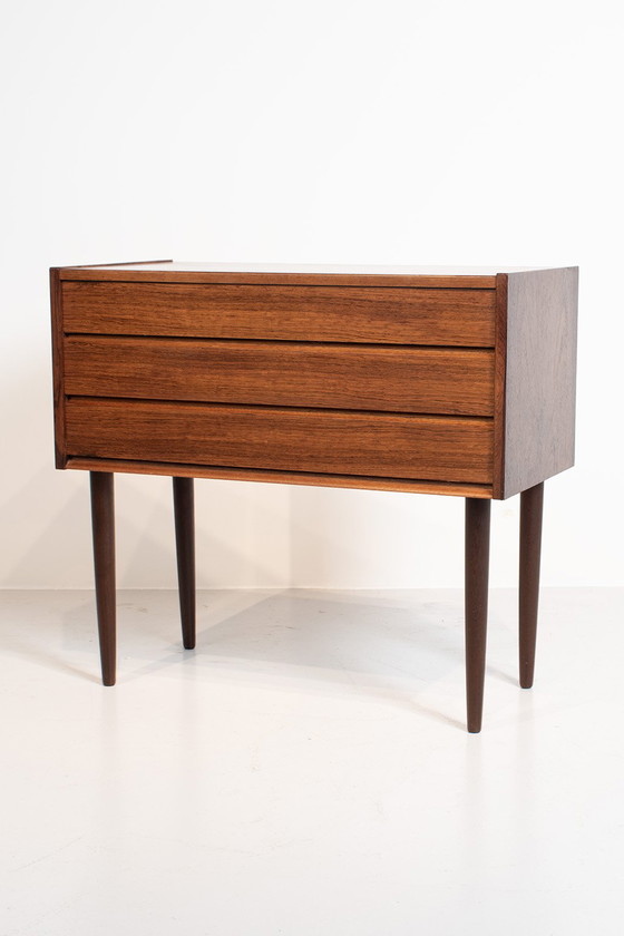 Deens ladekastje in prachtig palissander hout/fineer. Kan jouw interieur wel een upgrade gebruiken? Dit kasje straalt klasse uit.In een goede vintage staat.