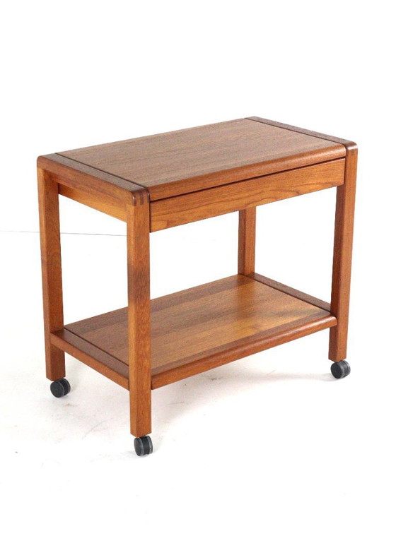 Model "Grove" is een strak uitgevoerde trolley / bijzettafel in de nu zo geliefde warme teak finish.