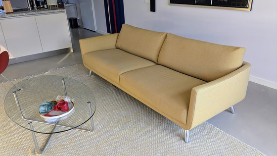 Prachtige bank van Design on Stock model Byen, in topconditie. De bank staat bekend om de Kuipvorm met dunne armleuningen, wat zorgt voor een rank uiterlijk en groot zitoppervlak.