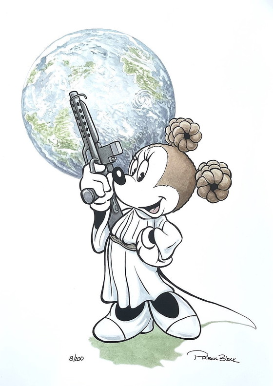 Minnie Leia' Prachtige en zeer zeldzame Disney/Star Wars print uitgebracht in 2023. Met Flinthear Glomgold als Keizer Palpatine. Handgesigneerd en genummerd door Patrick Block Ultrazeldzaam item. Uitgebracht in een enkele editie van slechts 200 gesigneerde en genummerde prints - de winnende bieder ontvangt mogelijk een ander nummer dan het getoonde. Afmetingen 30 x 42 cm.