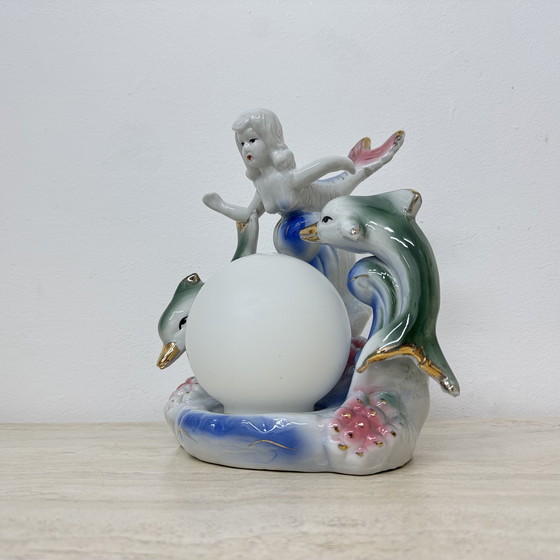 Dolfijn en zeemeermin Kleurrijk keramiek Vintage Tafellampje, 1970